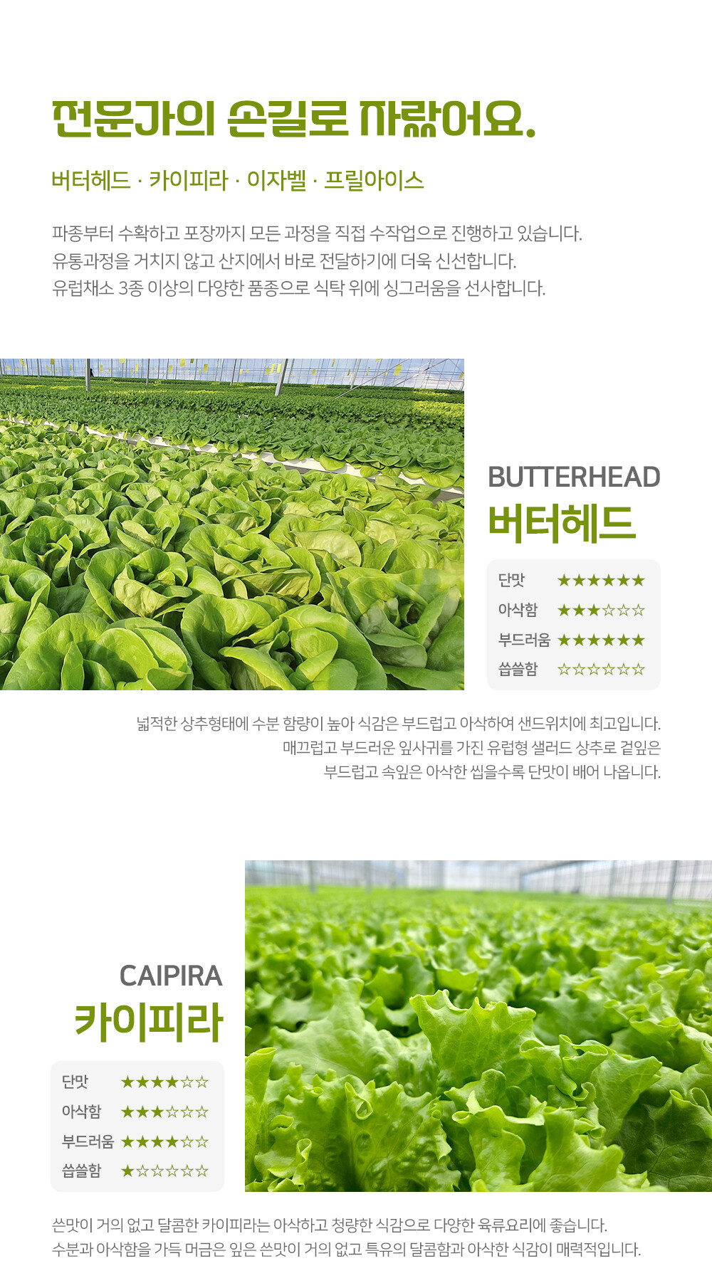 친환경 유럽 샐러드 채소 1kg 모듬 쌈채소 카이피라 버터헤드 이자벨