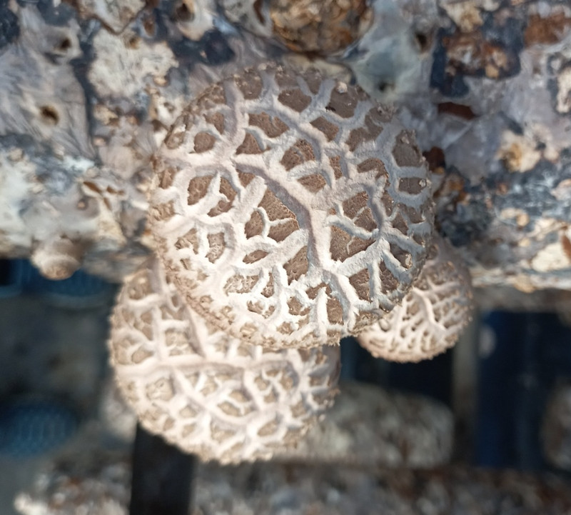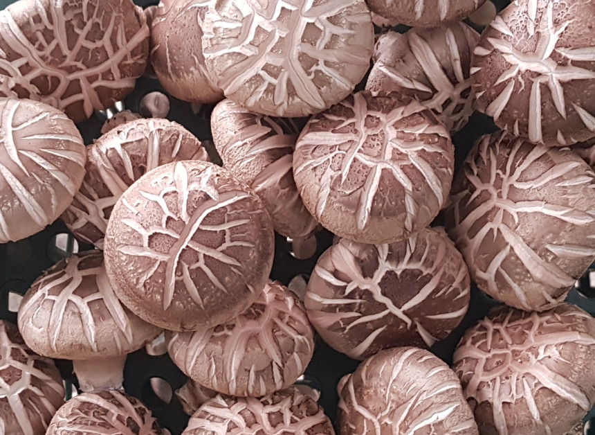 신선하고 건강한 표고버섯 수확에 노력하고 있습니다.